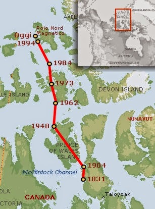 Il Polo Nord magnetico, attualmente localizzato nel Canada settentrionale, si sta spostando verso l’Alaska e potrebbe raggiungere la Russia. Ad affermarlo è uno scienziato canadese, Larry Newitt, del Geological Survey of Canada.