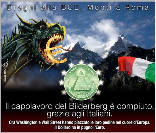 Un altro membro autorevole del Bilderberg con cui Berlusconi non sembra essersi sempre inteso è Mario Monti, ben noto come ex rettore e presidente del consiglio d’amministrazione della Università Bocconi. Meno risaputo è che anche Monti, amico personale di Gianni Agnelli, è stato un uomo Fiat. Nel 1989, a soli 46 anni, fece tris d’assi, stando contemporaneamente nel consiglio d’amministrazione della Fiat, della Banca Commerciale italiana e delle Assicurazioni Generali. Successivamente Berlusconi lo mandò a Bruxelles come commissario europeo, dove ebbe la delega al mercato interno e all’integrazione e ai servizi finanziari. Quando D’Alema, nuovo presidente del Consiglio, lo riconfermò, gli fu data la delega alla concorrenza che mantenne fino al 2004. Fatto questo che non gli ha impedito di diventare successivamente consulente antitrust della Coca-cola e di Goldman Sachs. Presidente europeo della Commissione Trilaterale e membro del Bilderberg, se ne dimise nel momento in cui fu nominato presidente del Consiglio dei ministri da Napolitano in sostituzione di un Berlusconi ormai inviso a una buona fetta dell’élite italiana e soprattutto transnazionale.